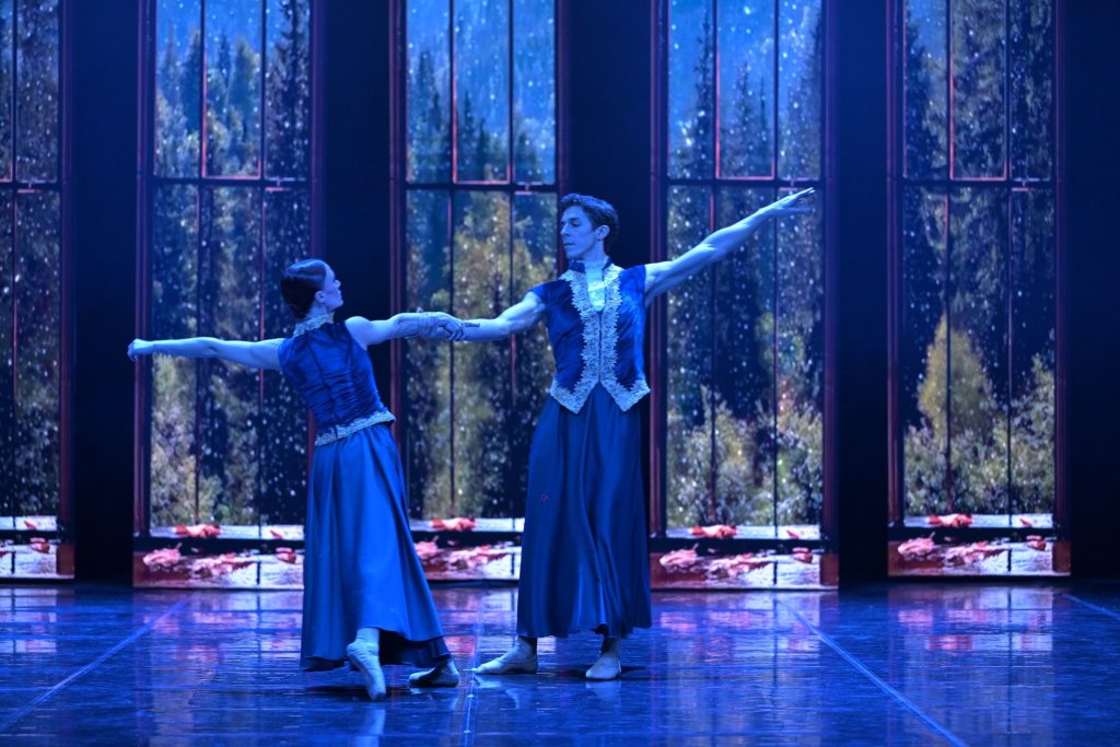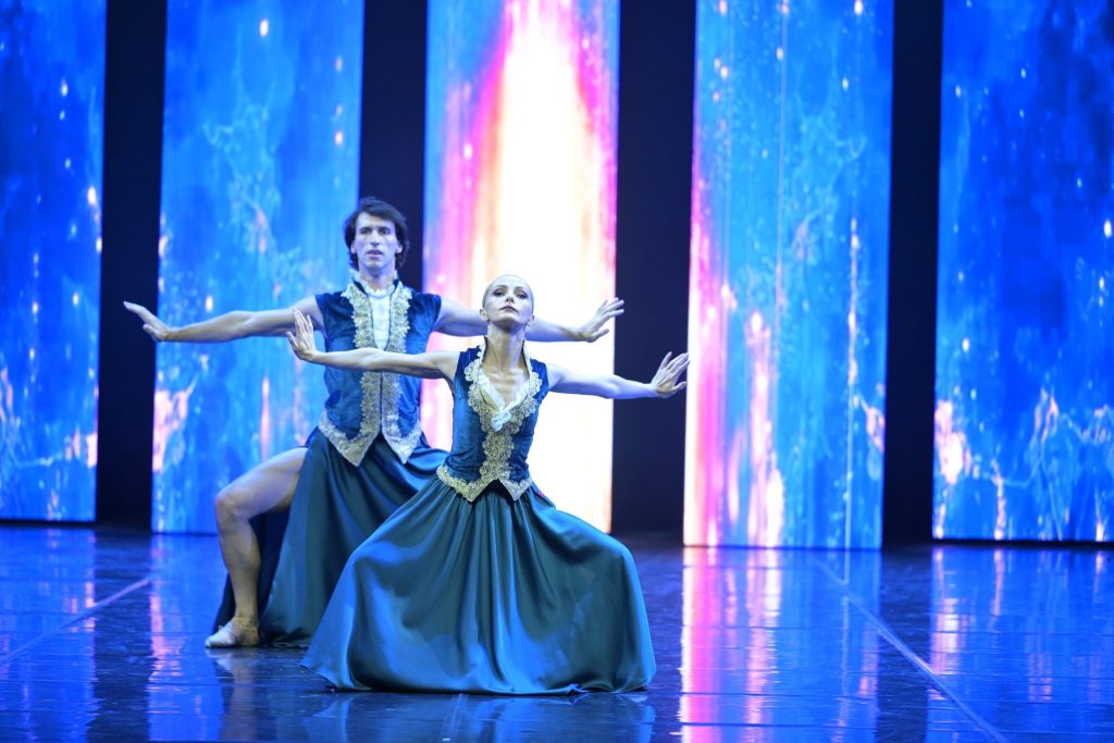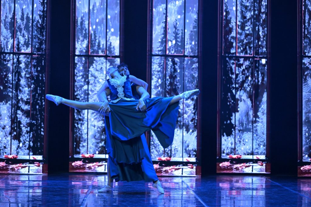 Mbrëmja plotë magji, ritëm dhe dinamikë filloi me pjesën e parë “Bolero” nën madhështinë e tingujve të Maurice Ravel. Një prapavijë e bukur me pamje piktoreske ngjasonte me një kështjellë përrallash ku dy të dashuruar (balerinë) shkriheshin në një, përmes një vallëzimi tejet të bukur. Një ton melankolik i shtohet veprës, kur prapavija merr pamje vjeshte. Ndërkaq, elemente magjepsëse merr shfaqja kur balerinët ‘fluturonin’ nën petkun e borës së kristaltë.