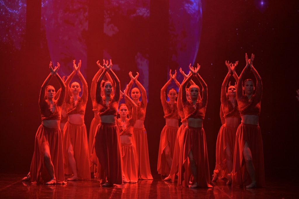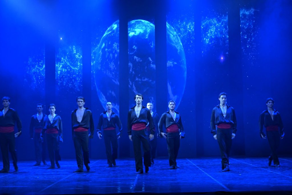 Zjarri i vihet skenës kur bashkangjitet e tërë trupa e Baletit Kombëtar në një rreth që ngjasonte me ritualet e shenjta të njeriut të kohëve të lashta.