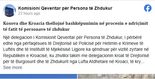 Gjatë diskutimeve, u prezantua metodologjia që Ministria e Veteranëve Kroatë aplikon në zbulimin e varrezave masive dhe individuale, përfshirë përdorimin e gjeoradarëve, qenve të trajnuar për kërkimin e kufomave, dronëve dhe pajisjeve të tjera bashkëkohore teknike. U diskutua gjithashtu mundësia e bashkëpunimit konkret dhe e ofrimit të mbështetjes profesionale në hulumtimin e lokacioneve të mundshme. Po ashtu me theks të veçantë u potencua edhe dimensioni ligjor i procesit, në garantimin dhe respektimin e të drejtave të familjeve të personave të zhdukur”, thuhet në njoftim.